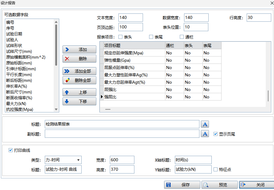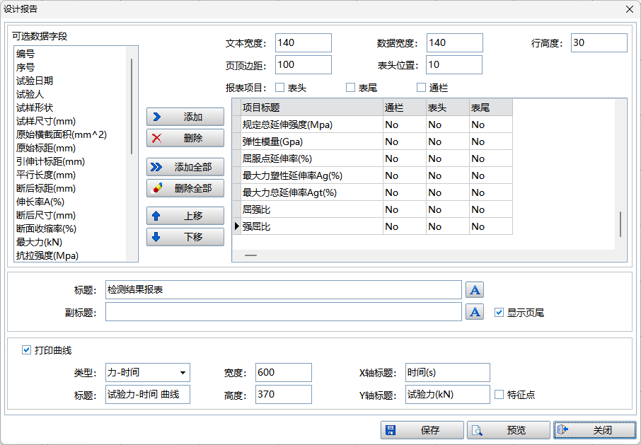 软件开放式设计,不仅提供了GB、ASTM、DIN、ISO、JIS等标准常用的试验结果,用户还可以根据自己的需要设计不同的计算公式,计算出所需要的结果。并提供了一个可自由设计格式的报告模板,用户可自己设计所需要的报告格式,还可在报告中加入自己公司的标志。